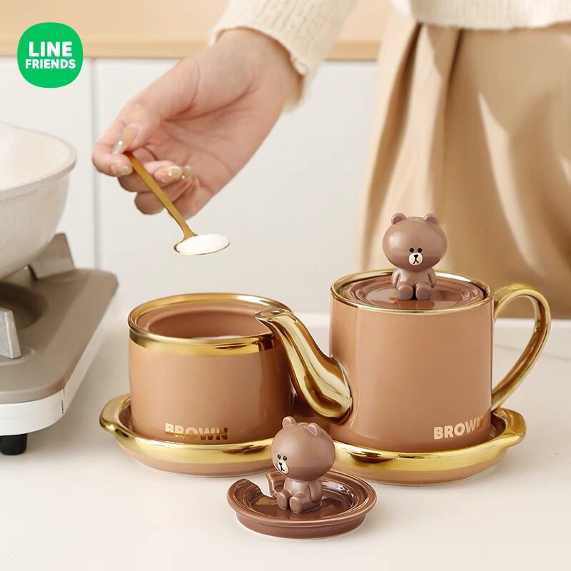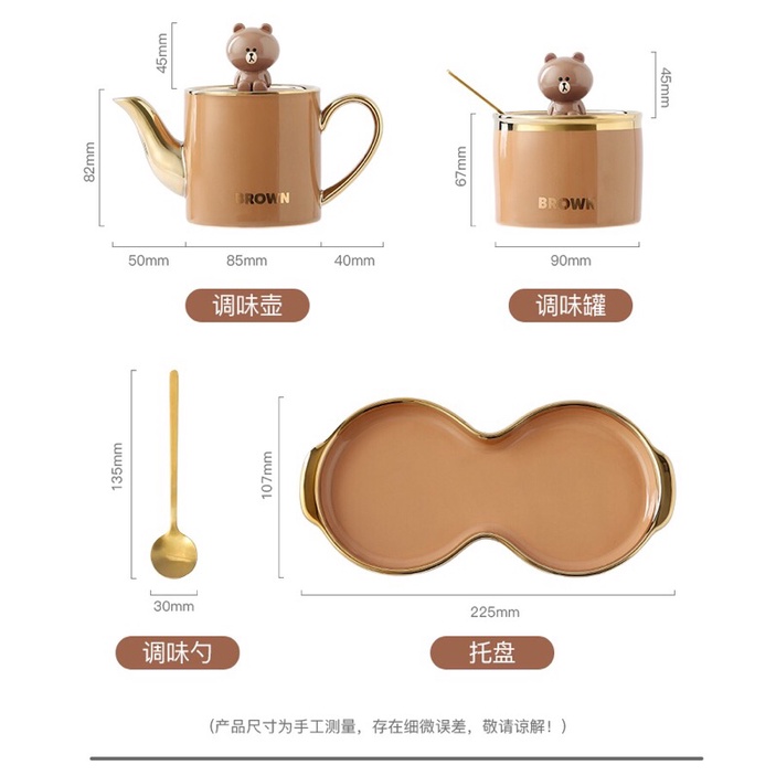 LINE FRIENDS set ấm rót dầu chống rò rỉ dầu, giấm và hũ đựng gia vị có nắp và thìa siêu đẹp sang