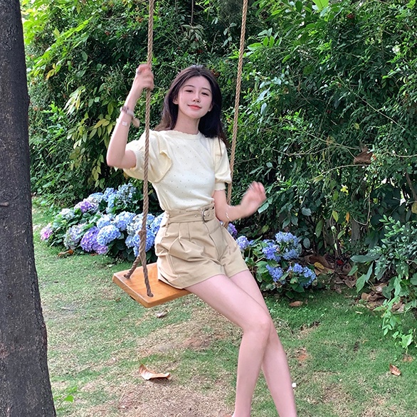Bộ chân váy yếm hai dây kèm áo tay ngắn thời trang hè 2023 cho nữ AIYV