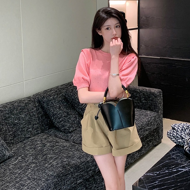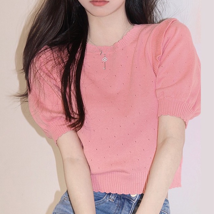 Linki ❀ Áo Thun Nữ Ngắn Tay Cổ Tròn Màu Trơn Đơn Giản Thời Trang Hàn Quốc