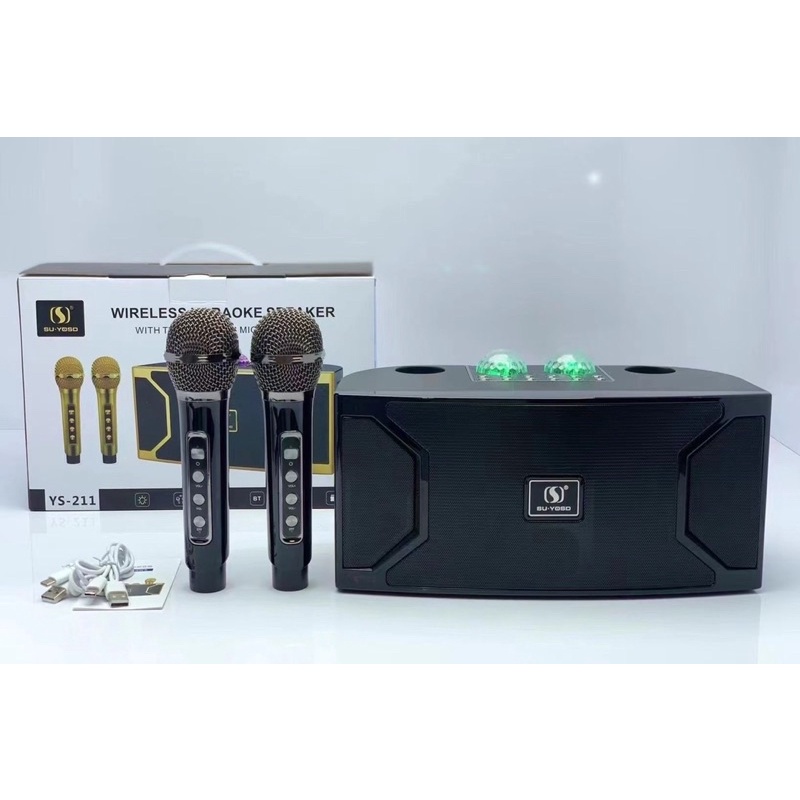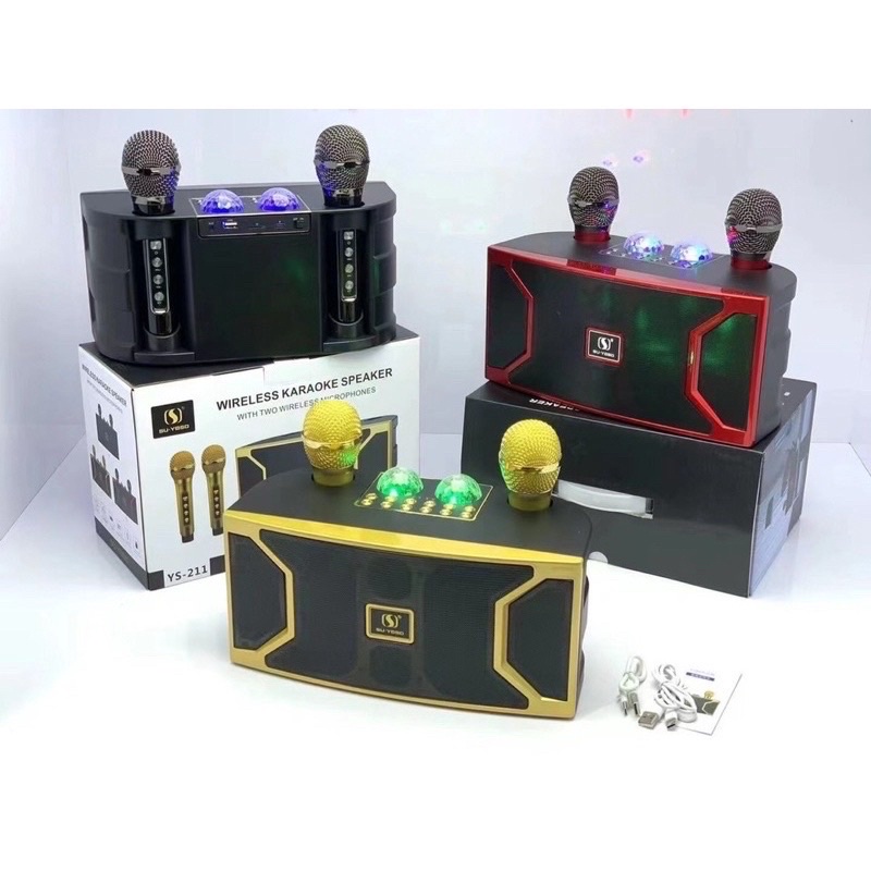 Loa karaoke bluetooth kèm 2 micro hát không dây YS 211 âm thanh hay bass căng pin lâu