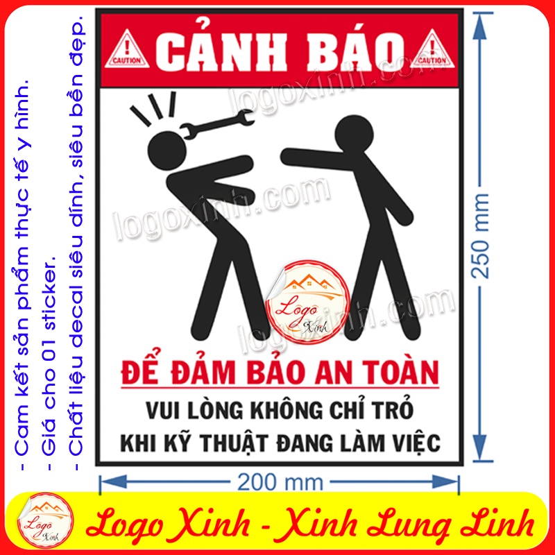 LOGO TEM STICKER BIỂN KHÔNG CHỈ TRỎ KHI KỸ THUẬT LÀM VIỆC ĐỂ ĐẢM BẢO AN TOÀN - BIỂN BÁO AN TOÀN LAO ĐỘNG VUI NHỘN