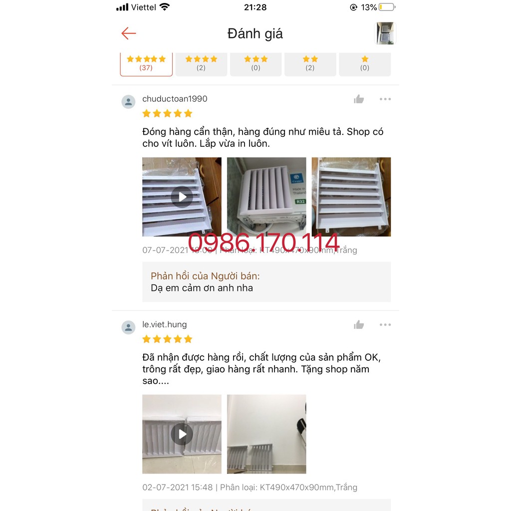 BỘ CHUYỂN HƯỚNG GIÓ NÓNG ĐIỀU HOÀ GIÁ TẠI XƯỞNG (đã gồm ốc)-HÀNG THÀNH PHẨM , giao nguyên chiếc như hình khách không cần tự lắp ráp từng thanh. Công dụng :- Hướng luồng gió nóng ra ngoài không phả ngược vào khắc phục tình trạng dùng điều hoà mà vẫn nóng ( có thể xoay ngang xoay dọc theo chiều muốn thổi gió đi) -Giải pháp cho ban công trồng cây xanh -Giúp tiết kiệm điện, kéo dài tuổi thọ, vận hành êm ái Chất liệu : -Thép dày dặn -công nghệ sơn tĩnh điện hiện đại không bong tróc , bền bỉ trước tác động nhiệt độ. -Thiết kế giảm ồn của gió nóng CÔNG THỨC TÍNH: kích thước bộ chuyển hướng cần hơn kích thước mặt lồng gió của cục nóng và nhỏ hơn hoặc bằng hoặc lớn hơn không quá 2cm kích thước cả cục nóng là được nếu không rõ có thể nhắn shop để tư vấn chọn kích thước ạ Lắp đặt : STT Kích thước sản phẩm Thông số kĩ thuật 1 Bộ chuyển hướng gió KT400x470x90,mm phù hợp một số dòng máy cục nóng nhỏ công suất 9000btu 2 Bộ chuyển hướng gió cục nóng KT 490x470x90mm phù hợp công suất máy 9.000BTU-12000BTU 3 Bộ chuyển hướng gió cục nóng KT 550x530x100mm phù hợp công suất máy 12.000->18.000 Btu/h. 5 Bộ chuyển hướng gió cục nóng KT 600x600x100mm phù hợp công suất máy 18.000->24.000 Btu/h. 6 Bộ chuyển hướng gió cục nóng KT 650x650x100mm công suất máy 24.000Btu/h->43.000 Btu/h. 7 Bộ chuyển hướng gió cục nóng KT 600x690x100mm phù hợp công suất máy 24.000Btu/h->43.000 Btu/h. Sản phẩm cực kỳ dễ lắp đặt chỉ cần ốp hướng gió lên mặt lồng gió rồi vít 4 cái chỉ 5p là xong ạ , hoặc có thể xem trên mạng hoặc ib shop để hướng dẫn ạ #matnacucnong #chuyenhuonggiodieuhoa #chuyenhuonggiocucnong #matnachuyenhuong #chuyenhuong #chuyển_hướng_gió_cục_nóng #bộ_chuyển_hướng_gió_điều_hoà #bochuyenhuonggiodannongdieuhoa #chuyenhuonggiodannong #Bộ_chuyển_hướng_gió_dàn_nóng_điều_hoà #Thiết_bị_chuyển_hướng_gió_cục_nóng_điều_hoà #dieuhoa #inverter
