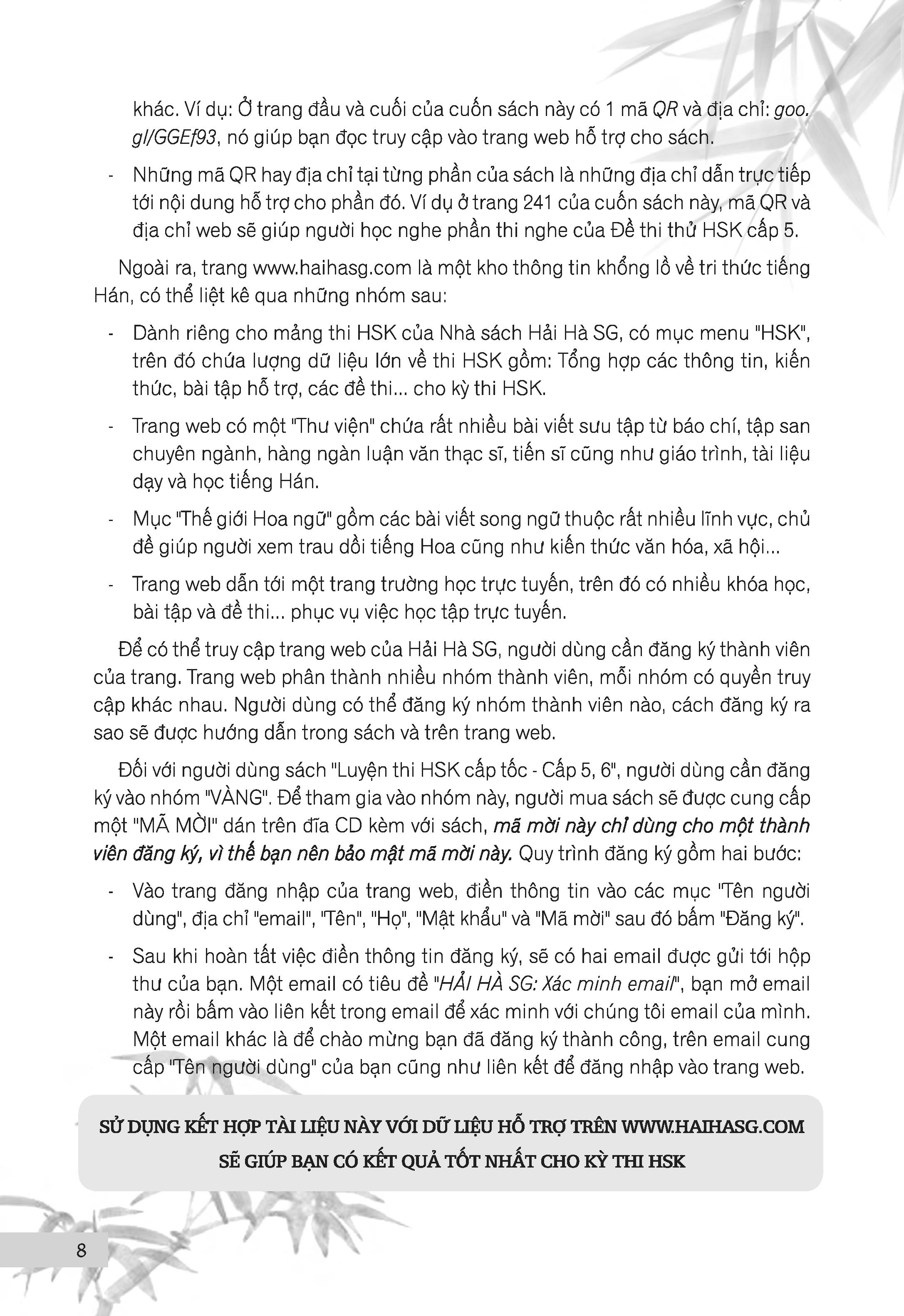 Đầu tiên xin được thuyết minh về chữ “cấp tốc” mà chúng tôi dùng trong tên của bộ sách. “Cấp tốc” không phải theo ý nghĩa đơn giản là nhanh và dễ dàng, không cần phải học nhiều mà cũng có thể thi đậu. Ý nghĩa của từ “Cấp tốc” mà chúng tôi hướng đến khi biên soạn bộ sách này là giúp người học nắm vững toàn bộ kiến thức của kỳ thi của một cách nhanh nhất mà vẫn bảo đảm kết quả tốt nhất. Người học vẫn phải làm việc cật lực để chuẩn bị tốt nhất cho kỳ thi mới hy vọng có được kết quả khả quan. Kỳ thi HSK do Văn phòng Hán ngữ nhà nước Trung Quốc (gọi tắt là HANBAN) tổ chức. HANBAN đã xây dựng chuẩn kiến thức (từ vựng, điểm ngôn ngữ, chủ đề đàm thoại …) cho từng cấp độ, từ đó đưa ra đề thi mẫu tương ứng cho cấp độ thi đó. Như vậy, Đề cương và Đề thi mẫu của HANBAN chính là tài liệu chuẩn để thí sinh ôn luyện, giáo viên và các trường giảng dạy cho kỳ thi HSK. Nó cũng là đề cương để các tác giả, nhà xuất bản và các đơn vị biên soạn và xuất bản các tài liệu cho kỳ thi này. Để đạt mục tiêu “cấp tốc” đã giải thích ở trên, chúng tôi dựa vào Đề cương và Đề thi mẫu của HANBAN, cũng như những tài liệu luyện thi HSK tốt nhất của Trung Quốc để biên soạn bộ sách này. Từng phần của bài thi được giới thiệu qua một cấu trúc thống nhất như sau: I. Đặc điểm dạng đề: Phần này giới thiệu cấu trúc, đặc điểm và cách làm dạng bài thi này. Ở đề thi viết còn giới thiệu cách chấm điểm của dạng đề. Rõ ràng là để làm bài thi tốt, đầu tiên là phải nắm vững đề thi và biết cách làm loại đề thi đó. II. Những lỗi thường gặp: Chúng tôi tổng hợp những lỗi thường gặp của thí sinh khi làm dạng đề thi này. Học tập từ sai lầm là cách cực kỳ hiệu quả để tránh lặp lại những sai lầm của những người đi trước đã gặp phải khi làm bài. III. Trọng điểm thi, cách thức và kỹ xảo làm bài: Đây là phần quan trọng nhất của tài liệu Phần trọng điểm thi giới thiệu những trọng tâm mà dạng đề thi tập trung vào. Liên quan đến trọng điểm thi này, chúng tôi đã hệ thống hóa các điểm ngôn ngữ, công thức hóa các cấu trúc ngữ pháp cũng như tập hợp các từ ngữ có liên quan. Tiếp theo, người học sẽ được giới thiệu về cách thức, kỹ xảo làm bài. Cuối cùng là Mục phân tích ví dụ, Phần này được chúng tôi biên soạn hết sức công phu vì biết rằng những lý thuyết, những phân tích ở phần trọng điểm thi, cách thức kỹ xảo làm bài sẽ rất khó được nắm bắt nếu không có những ví dụ cụ thể. Những ví dụ được sử dụng được lấy từ các đề thi, ưu tiên lấy từ đề thi mẫu của HANBAN, để minh họa cho những vấn đề đã được giới thiệu ở phần trọng điểm thi và cách thức kỹ xảo làm bài. Một lợi thế lớn của người học khi sử dụng bộ sách này là nó được hỗ trợ từ trang Dùng sách kết hợp với trang , người dùng được tiếp cận một số công cụ, một kho dữ liệu HSK cũng như kiến thức tiếng Hoa rất lớn gồm nhiều bài tập bổ trợ cho từng phần, các đề thi mô phỏng, đề thi thật cũng như những kiến thức có liên quan … chúng sẽ tạo cơ sở cho người học đạt được kết quả tốt nhất trong kỳ thi HSK. Những công cụ, kiến thức nổi bật mà chúng tôi dành tặng bạn đọc trên trang gồm: • Một quyển từ điển trực tuyến nhỏ. Cách sử dụng quyển từ điển này rất đơn giản, các từ được chú thích được gạch chân, bạn chỉ cần đưa con chuột vào từ này là thông tin về nghĩa, từ loại, phiên âm … của nó sẽ lập tức hiển thị. • Các đề thi, tài liệu hướng dẫn luyện thi HSK nói riêng, học tiếng Hán nói chung sẽ được cung cấp trên trang web ở dạng các bài đăng. Kho dữ liệu này luôn được cập nhật, giúp người học tiếp cận lượng dữ liệu lớn, hơn rất nhiều so với dữ liệu cuốn sách giấy mang lại. Trên trang hỗ trợ sách hiện có hơn 20 bộ đề thi giúp bạn đọc có nguồn dữ liệu phong phú cho việc học tập, ôn luyện cho kỳ thi. • Trang web chúng tôi có tính năng học trực tuyến thông qua các khóa học. Đối với người dùng bộ Luyện thi HSK cấp tốc này, người học sẽ có cơ hội làm thử một vài bài thi HSK trực tuyến, qua đó giúp người học có sự chuẩn bị thật tốt cho kỳ thi thực tế. Tuy nhiên, do khối lượng công việc khá lớn nên tính năng này chưa hoàn tất vào lúc phát hành bộ sách này. Chúng tôi sẽ làm nhanh nhất để nó mau chóng đến được với bạn đọc.Giá sản phẩm trên Tiki đã bao gồm thuế theo luật hiện hành. Bên cạnh đó, tuỳ vào loại sản phẩm, hình thức và địa chỉ giao hàng mà có thể phát sinh thêm chi phí khác như phí vận chuyển, phụ phí hàng cồng kềnh, thuế nhập khẩu (đối với đơn hàng giao từ nước ngoài có giá trị trên 1 triệu đồng).....