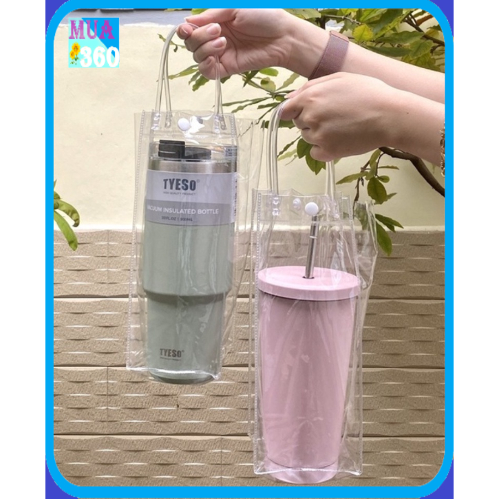 Túi trong suốt đựng bình ly giữ nhiệt nhựa pvc chống nước có quai xách tiện lợi