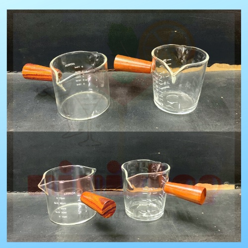 Cốc đong rót cà phê thủy tinh cán gỗ chia vạch, ly thủy tinh chia vạch vòi rót đôi định lượng 75ml