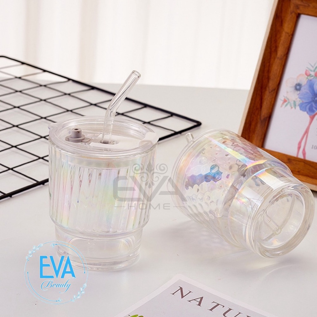 Ly Thuỷ Tinh Hot Trend Màu Cầu Vòng Óng Ánh 400ML Có Nắp Đậy Và Ống Hút Sang Trọng Phong Cách Hàn Quốc M650