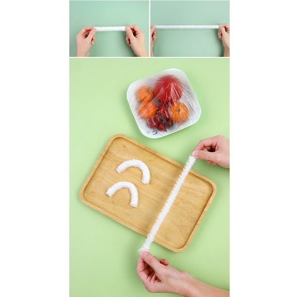 Màng Bọc Thực Phẩm Có Chun Co Dãn Tái Sử Dụng Kèm Túi Gấu- gói 100 cái siêu tiện lợi