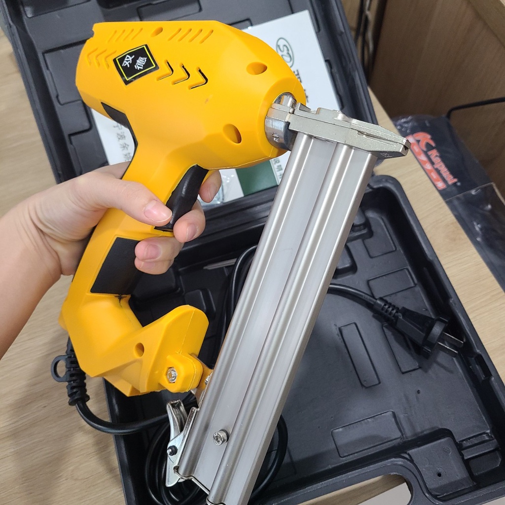 Sung bắn đinh gỗ thẳng F30 dùng điện 220v chuyên dụng trong thi công nội thất,đồ gỗ,pallet... Ưu điểm: -Dùng điện trực tiếp,gọn nhẹ,không cần kết hợp với máy nén khí -Khả năng bắn mạnh,nhanh với đinh F dài tối đa 30mm -Băng chứa đinh lên tới 150đinh/1 lần nạp đinh