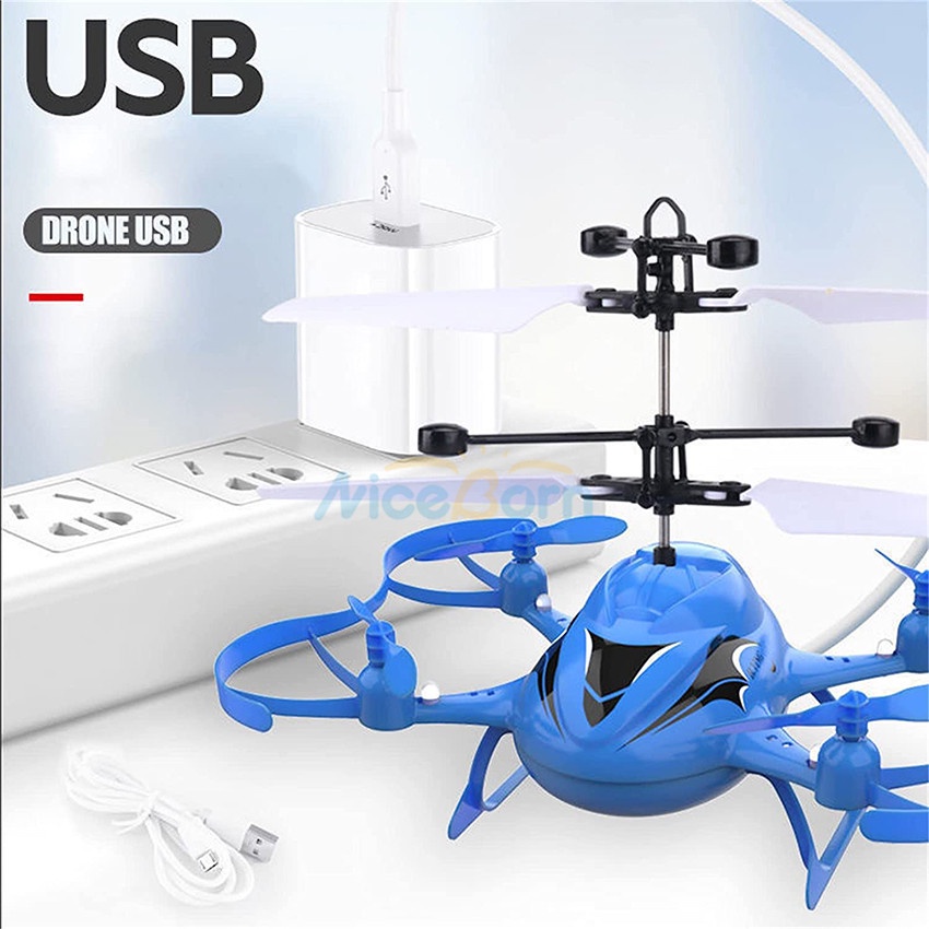 Máy Bay Trực Thăng Đồ Chơi Mini 2 Trong 1 Có 4 Đèn LED Sạc USB Và Điều Khiển Từ Xa