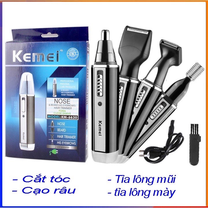 Máy Cạo Râu Điện Đa Năng Kemei 6630,Tông đơ cắt tóc,tỉa lông mày lông mũi cao cấp nhỏ gọn chất lượng cao Máy Cạo Râu Điện Đa Năng Kemei 6630: 4 đầu có thể thay thế có thể được sử dụng làm máy tỉa lông mũi, máy tỉa râu, máy tỉa lông tai, máy tỉa tóc mai và máy tỉa lôn