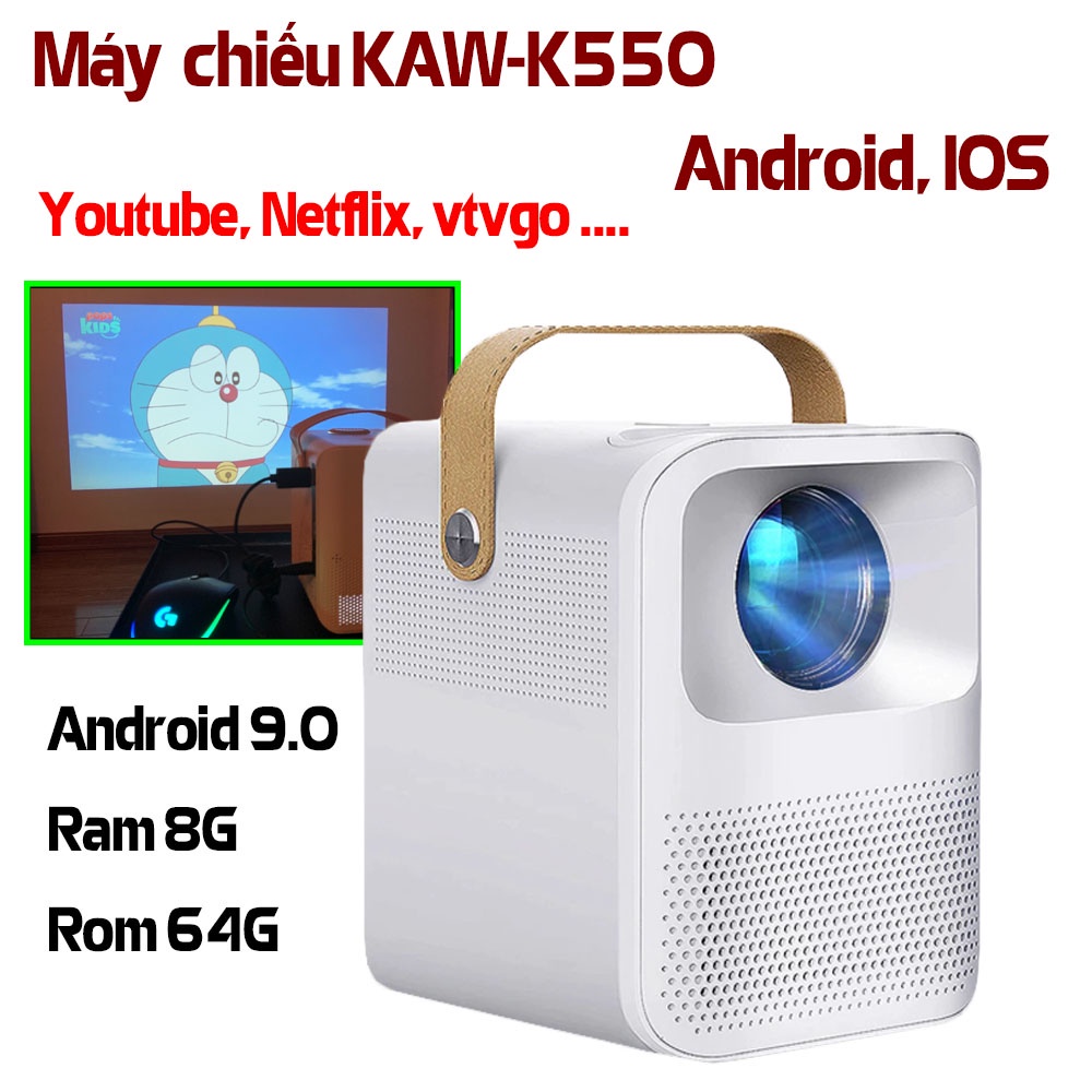 Máy chiếu mini Máy chiếu KAW cao cấp thông minh đa chức năng, không cần màn chiếu Bảo hành 1 đổi 1 trong 12 tháng Bảo hành 12 Tháng THÔNG TIN SẢN PHẨM 1.Đặc điểm nổi bật: - Màn hình nâng cấp sắc nét chuẩn HD với chất lượng trình chiếu tối đa 1080P., - Đa cổng kết nối đặc biệt bổ sung Phản chiếu không dây từ Điện thoại Máy tính bảng Macbook tiện lợi vô cùng! - Tích hợp loa kép đem đến trải nghiệm âm thanh vòm 360 độ sống động biến nhà bạn thành rạp phim và sân khấu đích thực! - Giữ nguyên độ sắc nét ngay cả cự ly xa giúp bạn trải nghiệm giải trí trên màn hình cỡ lớn lên tới 130 inch ngay tại nhà! - Thiết kế Nhỏ gọn dễ dàng di chuyển linh động khắp mọi nơi để bạn có thể trải nghiệm xem phim - giải trí trọn vẹn tại bất cứ nơi nào thoải mái nhất! - Số lượng ngôn ngữ tích hợp lên tới 23 ngôn ngữ, trong đó có Tiếng Việt, Tiếng Anh, giúp bạn đễ dàng cái thiện trình độ ngôn ngữ của mình 2. Thông số kỹ thuật - Tên sản phẩm: MÁY CHIẾU KAW K550 - Kiểu máy: LCD (5.8 inch TFT Display bản nâng cấp) - Phù hợp cho: Trình chiếu văn phòng, học tập, xem phim tại nhà… - Khả năng di động: Dễ dàng - Tương phản: 5000:1 - Phân giải: FULL HD 1080P - Hỗ trợ đầu vào: Full HD - Tỷ lệ ảnh chiếu 16:9 hoặc 4:3 - Khoảng cách chiếu: 0.94 mét – 2.84 mét - Đèn chiếu: LED Lamp - Tiêu cự ống kính: F=188 mm - Điện áp: 110V-240V / 50-60 Hz - Công suất: 150W - Đầu vào tín hiệu:USB, SD, AV - Định dạng: RM/RMVB, MPEG1, MPEG2, MPEG4, H264,MOV,FLV,Vc1,DivX USB power: 5V-500mA out - Âm thanh: 2 Loa * 4 ôm, 3W - stereo - Bảo vệ quá nhiệt: Có - Hệ điều hành: Android 9.0 - Bluetooth: Có - Chỉnh nghiêng: Chỉnh tay dọc ±15° điện tử - Trọng lượng đóng gói: 2 Kg - Đóng gói: Máy chiếu, sách HDSD, cáp nguồn, điều khiển từ xa - Tuổi thọ bóng chiếu: 30.000 giờ - Bộ nhớ: 8GB 3. Chính sách Đổi trả bà Bảo hành +) Chính sách Đổi Trả: - Sản phẩm có vấn đề, lỗi, mờ, không kết nối được, shop hỗ trợ, hướng dẫn tận tình mà vẫn không fix được: Đổi hàng mới hoặc trả hàng hoàn nguyên giá trị sản phẩm (không bao gồm ship) - Thời hạn đổi trả hàng: 7 ngày kể từ khi nhận hàng - Sản phẩm đổi trả ĐẦY ĐỦ TÚI, HỘP, PHỤ KIỆN, KHÁCH QUAY CLIP HÀNG TRƯỚC KHI GỬI, không chấp nhận sản phẩm khách làm rơi, vỡ, móp, xước. +Chính sách Bảo hành: -Sau thời gian đổi trả 1 đổi 1 nếu sản phẩm của khác hàng gặp các vấn đề sẽ được shop hỗ trợ theo chính sách bảo hành sản phẩm của shop. - Các vấn đề của máy: Máy có vấn đề, lỗi, mờ, không kết nối được - Hỗ trợ, hướng dẫn tận tình mày vẫn không fix được " bảo hành MIẾN PHÍ cho khách, Không đổi trả, phí ship khách trả. - Khách làm rơi, xước xát, máy móp có dấu hiệu rơi vỡ : Từ chối bảo hành, nếu khách muốn sửa thì khách chịu chi phí sửa và phí ship - Không phải các lý do trên: Không nhận lại sản phẩm - Thời hạn bảo hành: 12 tháng Kể từ ngày nhận hàng. *) LƯU Ý: Khi khách hàng nhận sản phẩm vui lòng QUAY VIDEO MỞ HÀNG để được đảm bảo 100% đổi lại sản phẩm mới nếu Shop giao bị lỗi. Các sản phẩm từ LAMORE STORElà các sản phẩm đã được kiểm tra kỹ lưỡng với chất lượng tốt và ổn định trước khi đăng tải Tất cả các sản phẩm được bán trực tiếp hoặc phân phối bởi LAMORE STOREđều được bảo hành 12 tháng, chúng tôi cam kết đem lại sự hài lòng tuyệt đối cho khách hàng khi mua hàng của shop! Cảm ơn quý khách đã tin tưởng lựa chọn sản phẩm của chúng tôi là nơi mua sắm! Chúc quý khách có một ngày làm việc hiệu quả. Dưới đây là Địa chỉ các trung tâm bảo hành của shop: CS1: Số 4 BT17 KĐT Mới Phú Lương Hà Đông, Hà Nội 036.694.2380 CS2: Số 107/2D Liên Khu 4-5 Bình Hưng Hòa B, Bình Tân, HCM 036.694.2380