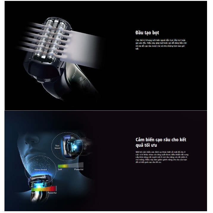 Tính năng sản phẩm: 1. 3 đầu máy cắt vòm nổi độc lập. Đầu dao cắt bên trong góc nhọn 30 độ. Có thể cạo sâu. 2. Lưỡi dao bằng thép không gỉ Anlai nhập khẩu chính hãng của Nhật Bản, cùng chất liệu với dao mổ. 3. Hệ thống phát hiện râu thông minh, động cơ bay từ tính,