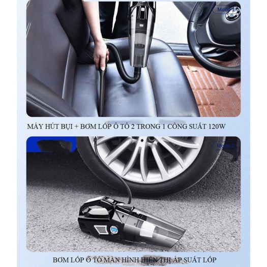Máy hút bụi ô tô Aikesi Nhật Bản - Máy bơm lốp ô tô đa năng 4 trong 1 - Hút bụi, Bơm lốp, Đo áp suất lốp, Đèn pin TADACA