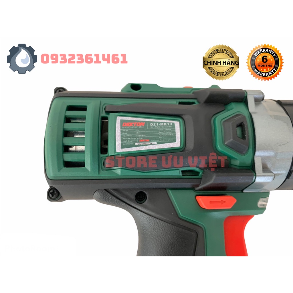 MÁY KHOAN PIN 3 CHỨC NĂNG ĐẦU AUTOLOCK DEKTON D21-MK13 CHÂN PIN D21 Model :D21-MK13 THÔNG SỐ KỸ THUẬT - Motor: 775# - Điện áp: 21v - Đầu cặp: 13mm AUTO-LOCK - Lực siết tối đa: 55Nm - Tốc độ 1: 0 - 500v/p - Tốc độ 2: 0 - 1600v/p - Cấp trượt: 16 + 3 - 3 Chức năng: Khoan - Bắt Vít - Khoan Búa ----------------------------------- PHỤ KIỆN ĐI KÈM : 1 Thân khoan 13mm 2Pin 21v 3Ah 1 Sạc Nhanh 1Móc Đeo Sách hướng dẫn sử dụng - phiếu bảo hành trị giá 6 tháng. PHỤ KIỆN THÂN MÁY : Thân máy Móc treo Sách hướng dẫn sử dụng - phiếu bảo hành trị giá 6 tháng. MỌI THẮC MẮC PHẢN HỒI CŨNG NHƯ CHẾ ĐỘ BẢO HÀNH KÍNH MONG QUÝ KHÁCH VUI LÒNG LIÊN HỆ SDT/ZALO: 0932361461 TÚ ĐỂ ĐƯỢC TƯ VẪN HỖ TRỢ TRỰC TIẾP XIN TRÂN TRỌNG CẢM ƠN QUÝ KHÁCH STORE Ưu Việt Chuyên: - Phân phối sỉ/lẻ máy điện cầm tay - Nông ngư cơ - Kim khí điện máy - Phụ tùng máy liên quan - Phân phối sỉ lẻ máy điện cầm tay SĐT/Zalo:0932361461 Địa chỉ: 312 Hùng Vương ( Quốc lộ 51), Huyện Hàm Tân,Tỉnh Bình Thuận Kho và bảo hành: 154 Lý Chiêu Hoàng, p10, q6, Tp: Hồ Chí Minh https://shopee.vn/nangthi2007?smtt=0.09 https://www.youtube.com/channel/UCthNAHnC7U45UU9Vh_DW1pA #khoanpin #khoanpin3chucnang #khoanpin3cn #dauautolock #khoanpin13mm #khoanpindau13mm #khoanpindau13mmautolock