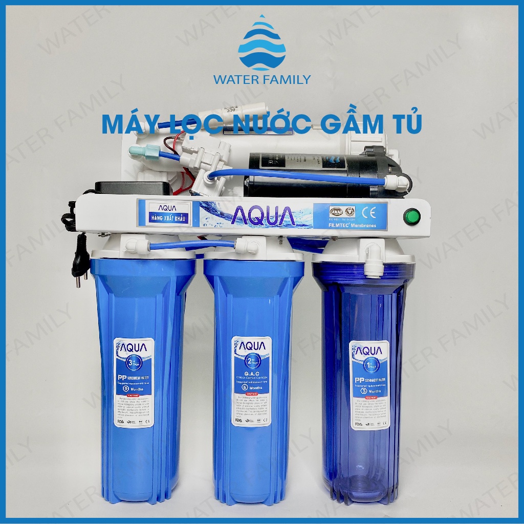 MÁY LỌC NƯỚC RO AQUA CHÍNH HÃNG – Màng RO AQua Filter chính hãng – Bơm hút nhập khẩu – Bình áp dung tích 8L với trữ lượng nước lớn – Bơm hút đẩy Có thể hút bể âm độ sâu 2m và đẩy khỏe 120-135 PSI giúp cho quá trình lọc diễn ra nhanh hơn đạt hiệu quả cao hơn. – Màn