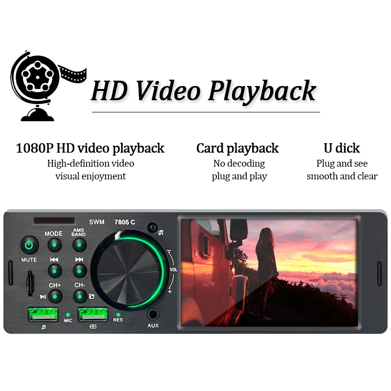 Chú ý ' Do vấn đề an ninh hải quan nên điều khiển từ xa trong sản phẩm không có pin nên bạn cần tự mua pin . Mô hình pin là pin khô AAA ! " Sự chỉ rõ * Màn hình TFT HD 4,1 inch * 7 nút chiếu sáng màu. đỏ. xanh dương. xanh lá cây. vàng. tím. lục lam. tím và trắng * Ngôn ngữ Menu hỗ trợ tiếng Anh , tiếng Tây Ban Nha , tiếng Nga , tiếng Pháp , tiếng Bồ Đào Nha , tiếng Đức , tiếng Ý , tiếng Thổ Nhĩ Kỳ , tiếng Séc , tiếng Thái , tiếng Ba Lan , tiếng Trung , tiếng Nhật , tiếng Ukraina , tổng cộng 18 ngôn ngữ * Phát lại âm thanh Bluetooth A2DP và gọi điện thoại rảnh tay * Bộ thu FM âm thanh nổi kỹ thuật số với cài đặt sẵn 18 đài * Cổng USB 2.0, Khe cắm TF , Giao diện ổ cắm AUX * Sạc USB cho Android / Apple * Hỗ trợ định dạng Video - RMVB / RM / FLV / 3GP / AVI / MP4 * Hỗ trợ định dạng âm thanh - MP3 / WMA / APE / FLAC / WAV * Hỗ trợ đầu vào camera quan sát phía sau * Hỗ trợ đầu ra video RCA * Hỗ trợ đầu ra âm thanh 2 kênh RCA * Bộ nhớ vị trí cuối cùng. phát lại bộ nhớ phương tiện tiếp tục * Đồng hồ kỹ thuật số thời gian thực * Chip khuếch đại TDA7388. công suất đầu ra lớn * Điều khiển từ xa , điều khiển pin AAA khoảng cách cực xa 8 mét * Đầu nối ISO Pakage ' Màn hình vô tuyến kỹ thuật số 1 * 4,1 inch 2 * cáp 1 * Hướng dẫn sử dụng 1 * điều khiển từ xa ( không bao gồm pin) Tùy chọn ' 1 * camera sau