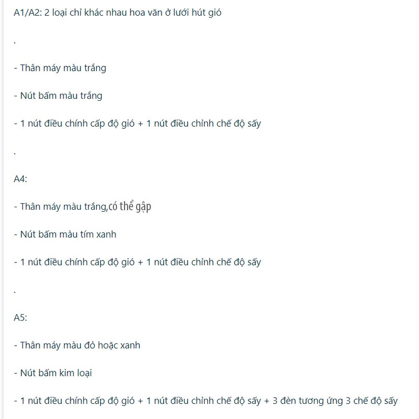 🔥 🔥 🔥 TÊN SẢN PHẨM : Máy Sấy Tóc Bổ Sung Ion Âm Xiaomi SHOWSEE A1/A2/A4W Công Suất 1800W Cao Cấp Chống Xù Rối Khô Tóc' 🔥 🔥 🔥 THÔNG TIN SẢN PHẨM . 🍀 Thương hiệu: Xiaomi ShowSee. 🍀 Model: A1-W / A2-W / A4-W 🍀 Khối lượng tịnh: 450g. 🍀 Công suất định mức: 1800W. 🍀 Đầu vào: 220V 50Hz 🍀 Màu sắc Màu trắng 🔥 🔥 🔥 PHÂN LOẠI 🆕 1、--------------- Model: A1-W , A2-W--------------- - A1 và A2 giống nhau, chỉ khác nhau hoa văn ở lưới hút gió - Khối lượng tịnh: 450g - Kích thước : 120 x 76 x 245mm - Kích thước đóng gói: 163 x 76 x 245mm 🆕 2、---------------- Model A4-W --------------- - Trọng lượng 517g - Kích thước 120 * 76 * 245mm - Kích thước đóng gói: 163 * 76 * 245mm - Chiều dài dây 1,8m - Gấp gọn được 🔥 🔥 🔥 ĐẶC TÍNH VÀ ƯU ĐIỂM SẢN PHẨM ✅ 1、Thiết kế cầm tay nhỏ gọn, di động tiện lợi phù hợp cho việc di chuyển, du lịch. Kích thước nhỏ gọn cùng trọng lượng nhẹ chỉ 454g, người dùng có thể sử dụng sản phẩm trong thời gian dài vẫn không có cảm giác mỏi tay. ✅ 2、Vòi phun có thể tháo rời được thiết kế với khả năng tạo luồng gió xoay 360 độ giúp làm gia tăng lớp cách nhiệt, vừa bảo vệ tóc vừa tránh tình trạng bỏng da đầu khi nhiệt độ quá nóng. Mặt lưới bảo vệ kim loại giúp chống bụi, ngăn chặn sự xâm nhập côn trùng, bảo vệ động cơ bên trong. ✅ 3、Máy sấy tóc ShowSee có khả năng giải phóng các ion âm nồng độ cao 20 triệu/cm trung hòa tĩnh điện trực tiếp lên bề mặt tóc giúp làm mượt tóc, tránh tình trạng đóng vảy tóc, phục hồi và làm khô nhanh hơn mà không làm rối tóc ✅ 4、Công suất mạnh mẽ 1800W, 6 cánh quạt cùng động cơ với mô-men xoắn cao được trang bị sẽ cung cấp một lượng không khí lớn, ổn định với tốc độ gió ở cửa thoát khí đạt 74m/s. ✅ 5、Được trang bị 2 chế độ gió tùy chỉnh, gồm chế độ không khí nóng thích hợp để làm khô tóc và chế độ gió lạnh để tạo kiểu tóc. 🔥 🔥 🔥 CAM KẾT VỚI KHÁCH HÀNG Đóng gói sản phẩm chắc chắn. Chất lượng sản phẩm giống mô tả và hình ảnh. Hỗ trợ đổi trả sản phẩm với các lỗi: 🎀 1、Sản phẩm bị lỗi. 🎀 2、Hư hỏng trong quá trình vận chuyển. 🎀 3、Khách hàng đưa ra lý do chính xác về sự không hài lòng về sản phẩm.. 🎀 4、Hàng đổi trả phải đảm bảo còn nguyên mác và không có dấu hiệu đã qua sử dụng. 🎀 5、Việc hoàn tiền đổi trả thực hiện theo quy định của shopee #maysaytoc #maysaytocxiaomi #maysaytocchinhhang #maysaytocgiare #maysaytocmijiasimple #maysaytoccaocap #maysaytocnhapkhau #maysaytocthoitrang#shopeefreeship #freeship #sale #chinhhang #sales #giamgia #freeship #giare #uudai #rẻ #shopee #bluetooth #xiaomi #máy-sấy-tóc #xiaomi #chính-hãng #CMJ02LXW #maysaytoc #mijia #simple #maysaytocdulich #gấpgọn