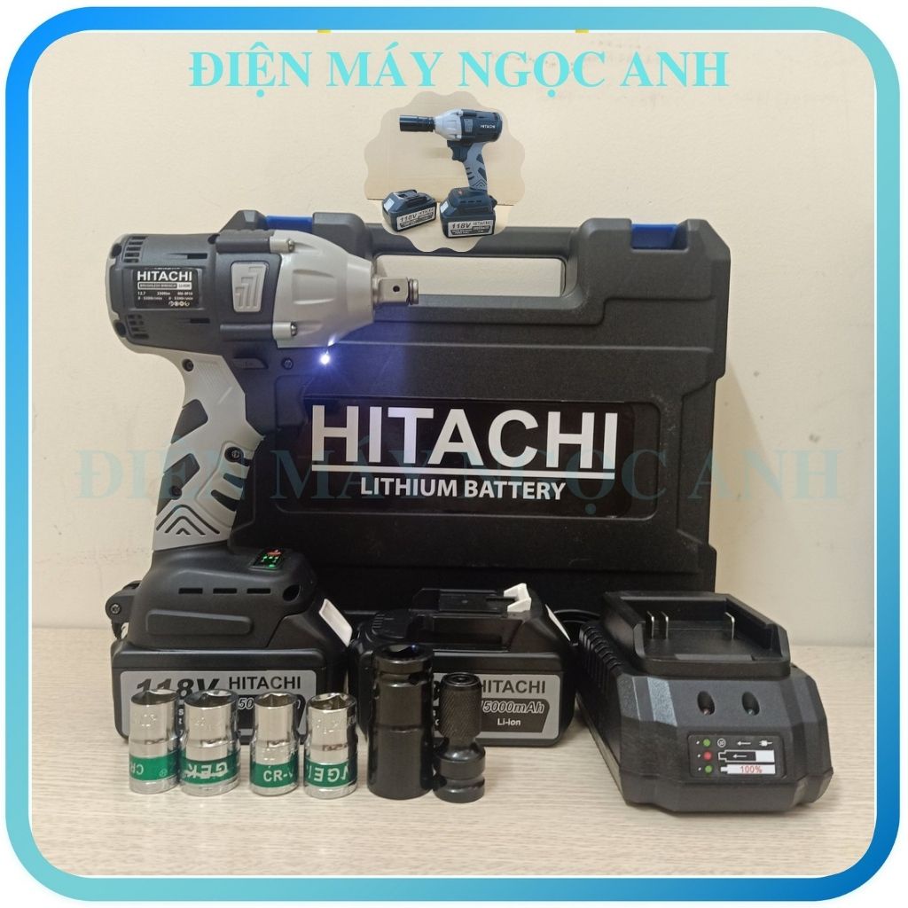 Máy siết bulong pin bắn vặn bắt siết bu lông total không chổi than chính hãng HITACH 118V 100% đồng- 2 Pin Chuẩn 10 Cell