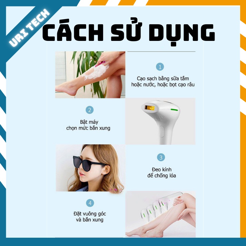 Máy Triệt Lông Vĩnh Viễn Cầm Tay Tại Nhà URI-AM001 công nghệ triệt PlAS IPL 2022 kèm cảm biến tia IPL tới chân lông