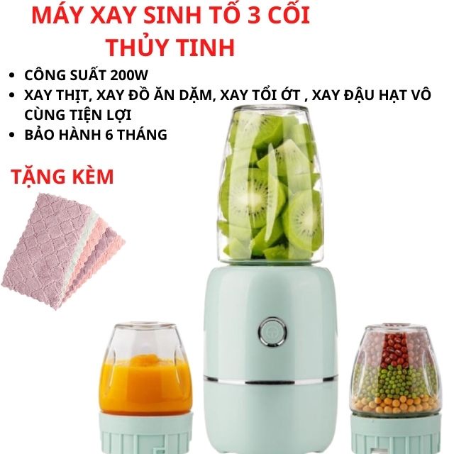 Máy Xay Sinh Tố 3 Cối Ăn Dặm Cho Bé, Máy Xay Cầm Tay Mini,Xay Tỏi Ớt,Xay Thịt 3 Cối Thuỷ Tinh, Đậu Hạt