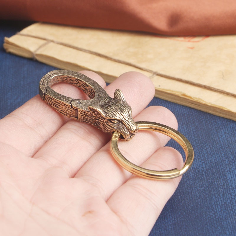 Móc khóa đồng thau hình Sư tử cực đẹp may mắn độc đáo lạ phong cách bền bỉ đẹp.4H