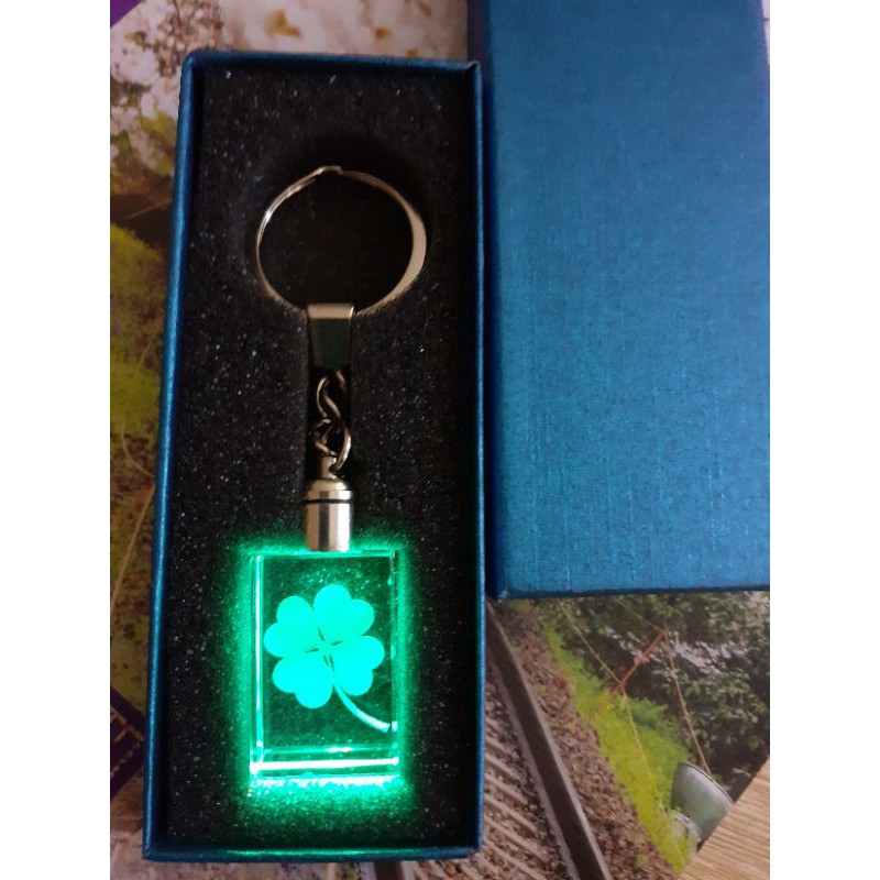 Móc khóa cỏ 4 lá may mắn đèn LED nhiều màu - có núm xoay để bật/tắt đèn nháy đa màu