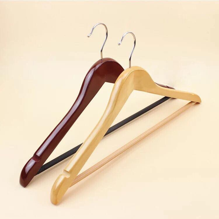 Móc treo quần áo, móc gỗ tam giác có thanh ngang size 44cm, có thiết kế rãnh chống trượt ở vai, dùng cho shop