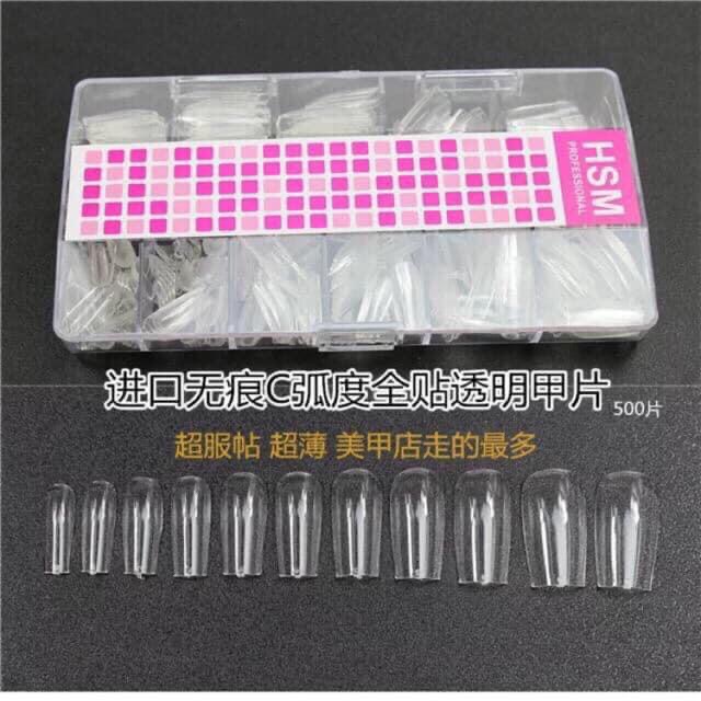 MÓNG ÚP HSM CHÍNH HÃNG - HỘP 500 MÓNG ĐỦ FORM thang vuông nhọn tròn bầu trong đục