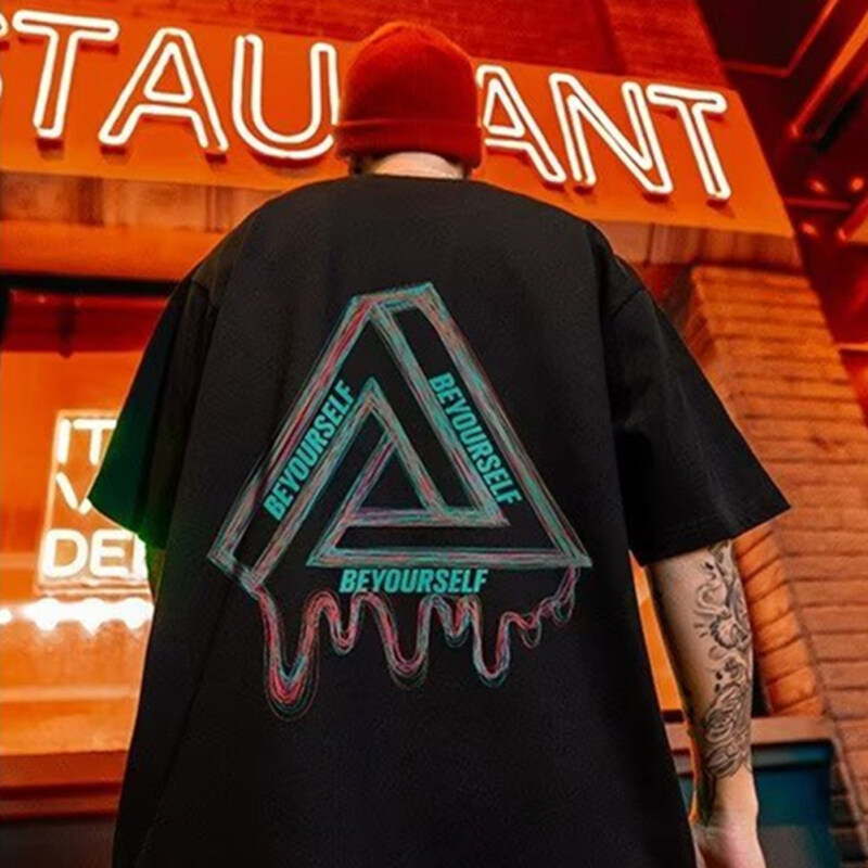 (size M-8XL)Áo Thun Mùa Hè Dáng Rộng Tay Cộc In Chữ V Phía Sau Vải Mềm Kích Thước Lớn Cho Nam
