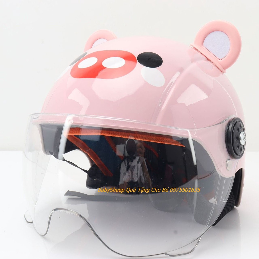 Mũ bảo hiểm hình thỏ gấu bảo vệ cho bé trai bé gái có kính chắn hàng cao cấp loại 1 cho bé 4-12 tuổi