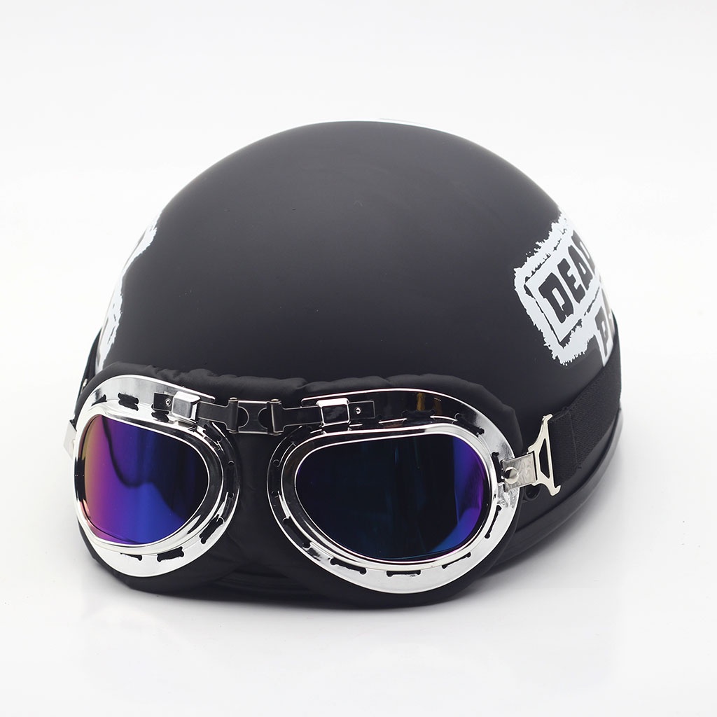 Nón bảo hiểm deapoll chữ trắng kèm kính uv,phi công - Mũ bảo hiểm nửa đầu có kính,kèm lưỡi trai,gắn kèm các phụ kiện như tai mèo,tai gấu,tai chuột,chong chóng,sừng,mắt ếch,các bạn có thể trang trí cho chiếc nón bảo hiểm của mình thêm độc đáo Lưu ý: Trên thị trường có
