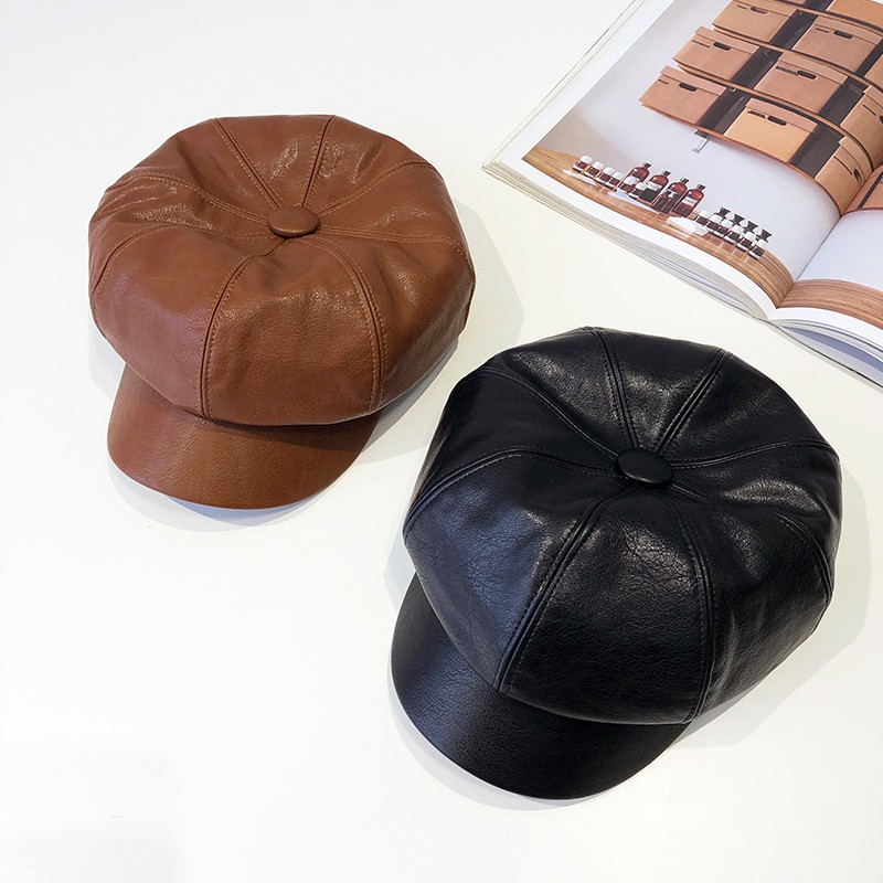 Mũ beret Da pu Phong Cách Anh Quốc Cổ Điển Thời Trang Thu Đông Cho Nữ