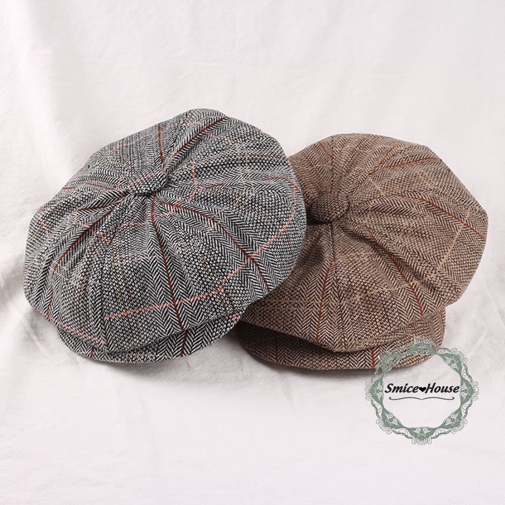 Mũ beret lưỡi trai họa tiết caro kiểu châu Âu cổ điển/ Nón bát giác mỏ vịt họa sĩ nam nữ
