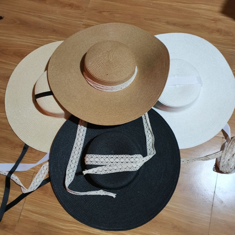 Mũ cói đi biển vành rộng dây buộc siêu xinh