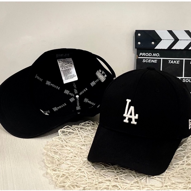 Mũ lưỡi trai đen MLB thêu chữ LA trắng Hàn Quốc, nón kết lưỡi trai phong cách Hàn quốc LA đen cao cấp, hàng xuất dư.