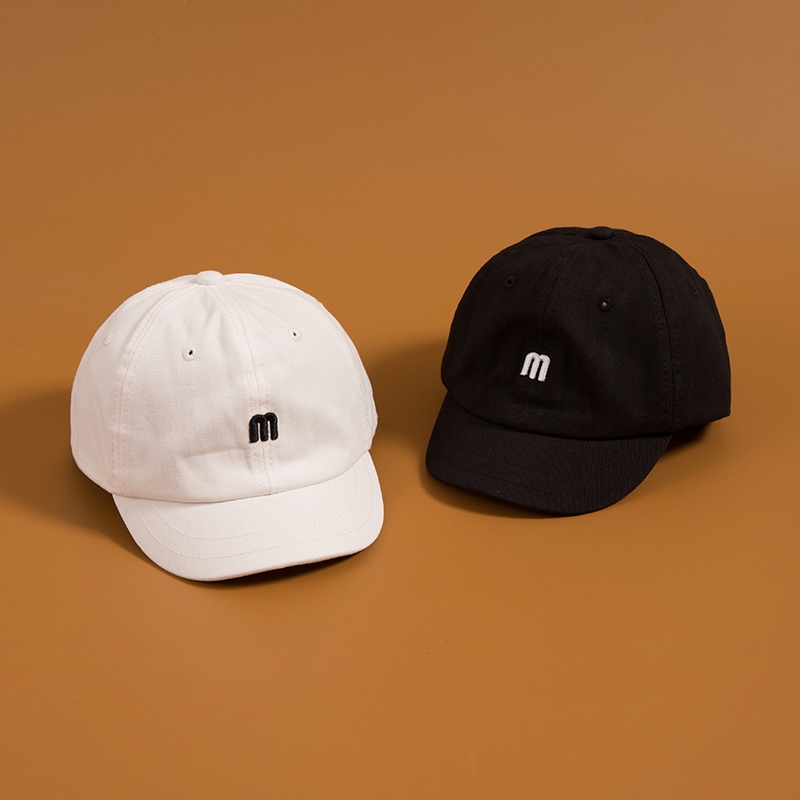 Mũ lưỡi trai bóng chày vải kaki vành ngắn mềm che nắng màu trơn chữ m nhỏ kiểu cổ điển Mỹ phong cách hip hop