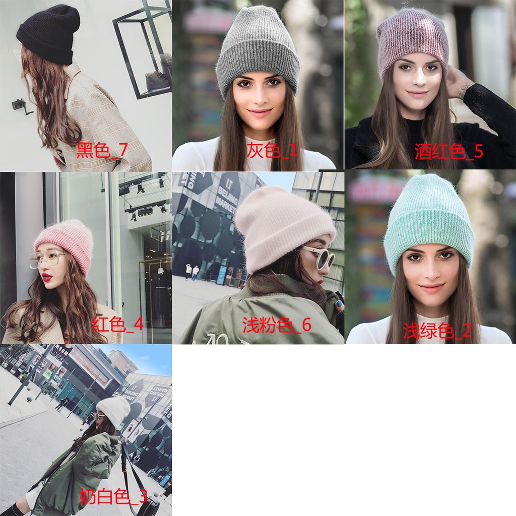 Mũ len lông thỏ dày dặn màu sắc đơn giản phong cách Hàn Quốc dành cho nữ