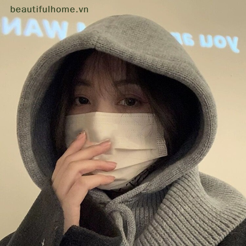 Mũ Len Trùm Đầu Dệt Kim Có Khăn Choàng Cổ Kiểu Dây Rút Ấm Áp Ngoài Trời Mùa Đông Cho Nam Và Nữ