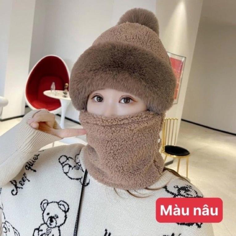 Mũ Nón Len Lông Cừu Kèm Khăn Quàng Cổ Phong Cách Hàn Quốc Mẫu Mới Siêu Ấm