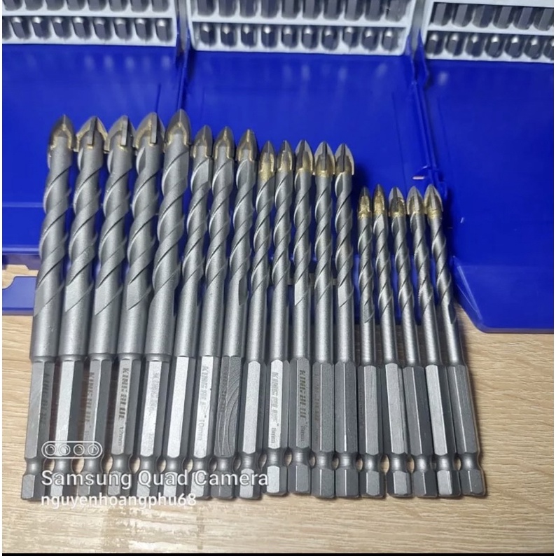 - Mũi khoan đa năng Kingblue có các loại mũi từ 6 Ly tới 12 Ly. - Công dụng: Khoan gạch, khoan tường ( ko khoan bê tông ), khoan gỗ, khoan nhôm, nhựa, sắt mỏng, khoan gạch men. - Đầu lắp: Chuôi lục giác 6 cạnh thông dụng - Sử dụng: Dùng cho máy bắn vít chuyên dụng, má