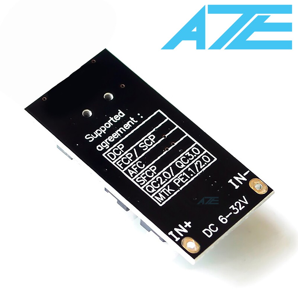 Thông số kĩ thuật : - Điện áp đầu vào: 6V-32V - Điện áp đầu ra: mặc định 5V, kích hoạt tự động sạc nhanh - Công suất đầu ra: tối đa 24W ( 5V-3.4A ,, 9V-2.5A ,12V -2A , vv) - Hiệu suất chuyển đổi: 90% -97% - Hỗ trợ nhiều giao thức sạc nhanh : BC1.2, Apple, Giao thứ