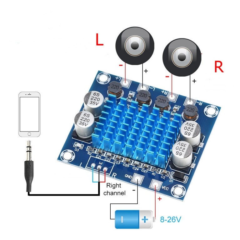 -mạch khuếch đại âm thanh nổi 30W+30W -mạch kèm theo rắc 3 chân và dây bus 3 chân như hình dùng kết nối dây tính hiệu âm thanh vào -chú ý đấu đúng cực - + .nếu đấu sai có thể gây hỏng mạch -sản phẩm y như hình sop tự chụp