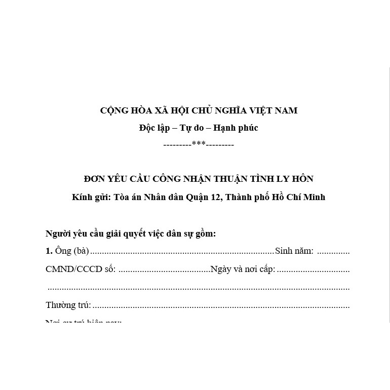Mẫu đơn ly hôn quận 12 + Hướng dẫn soạn thảo đơn chuẩn nhất