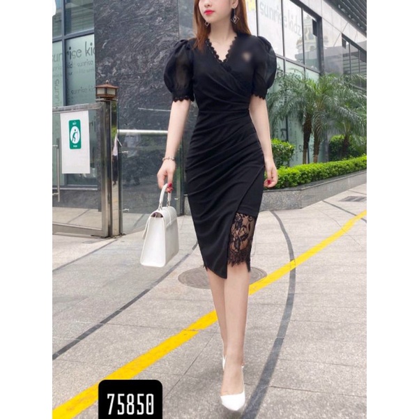 Mẫu váy đầm ôm body xẻ tà dự tiệc cổ V ren xinh xắn, mẫu váy đầm ôm nữ mới giá rẻ đẹp sexy sang chảnh