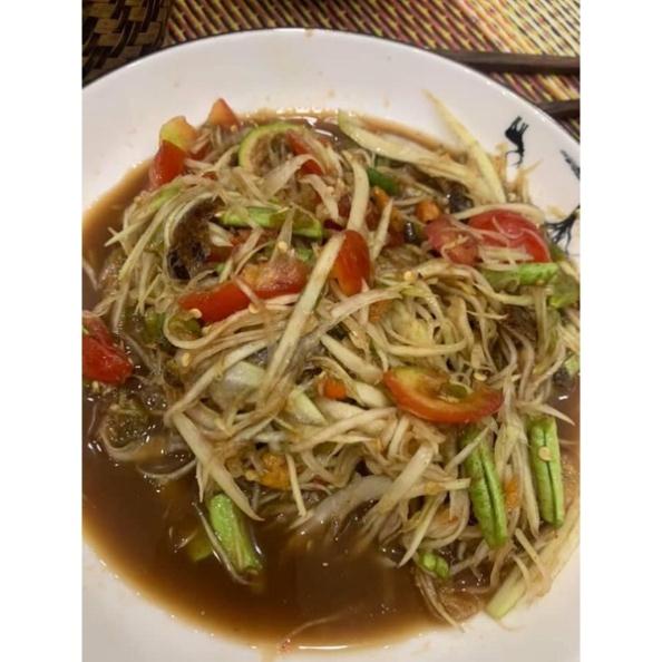Đu đủ ba khía, Campuchia gọi là Ko lôn bốc #220k Thái Lan gọi là Som tam, Lào gọi là Lap Là món gỏi đặc trưng của người Thái, Lào và Campuchia. Về phần nguyên liệu cơ bản là giống nhau, gồm đu đủ và rau muống ướp lạnh được đâm cùng các gia vị như mắm ruốc, đậu phộng, ba khía, đường thốt nốt, đậu đũa sống, tôm khô, chanh, tỏi, ớt.... Ăn kèm các loại rau như ngò gai, quế, diếp cá. Món này nổi bật vị chua của chanh, cay của ớt và mùi thơm chủ đạo của mắm ruốc, ba khía. Món này phải đâm mới ngon nha, không phải cứ trộn như món gỏi của người Việt mình đâu, càng đâm càng giòn, ăn chơi hay nhậu đều ngon. 💯💯Về Việt Nam các chị làm theo e nha ➕Đu đủ xanh ➕Ớt ➕Đậu phộng ➕Đậu que sống ➕Tôm khô Ai thích ăn 3 khía sống vẫn giã nhỏ bỏ vào đc hết nha ❗️3 muỗng cafe đường ❗️1 muỗng canh nước sốt somtam ❗️Nước cốt chanh thêm tuỳ khẩu vị Trộn hết lên cho em. Ăn ko ghiền trả em mang về nha Mọi người mún làm chuẩn đúng vị chỉ cần mua chai sốt bên e hehe Chuẩn thái Made in Thái Lan Hsd 1 năm #gỏi #đu_đủ #trộn #ba_khía #mắmbakhía #gỏi_mắm_ba_khía #trộn_đu_đủ_xanh #thái_lan #tháilan #sotdudu #thailand #somtam #sotgoibakhia #goibakhia #goicua #dudu #goisong #daudua #chuanthai #goichin #khongtanh #thythy #thailan #trộn #đuđủ #tháiland #gỏi_đu_đủ #thái_lan #sốt_gỏi_đu_đủ #sốt_làm_gỏi_đu_đủ Chuẩn thái Made in Thái Lan Hsd 1 năm dung tích 500ml