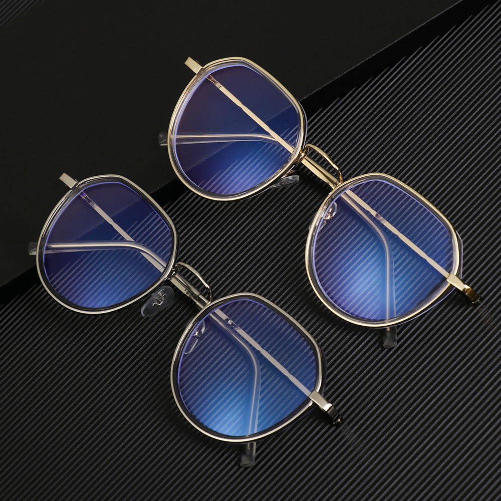 Mắt kính gọng tròn kim loại chống ánh sáng xanh dương thời trang cho nam và nữ