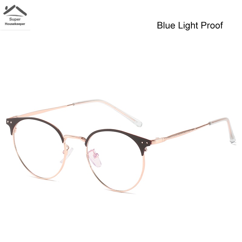 Mắt Kính Gọng Tròn Mỏng Tròng Phẳng Đổi Màu Phong Cách Retro Cho Máy Tính