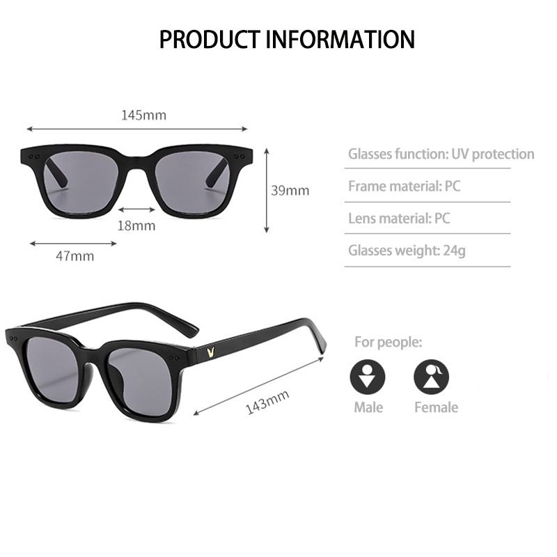 Mắt Kính Râm Gọng Vuông TA Store Chữ V Thời Trang Phong Cách Unisex Nam Nữ Chống Tia UV Chống Bụi