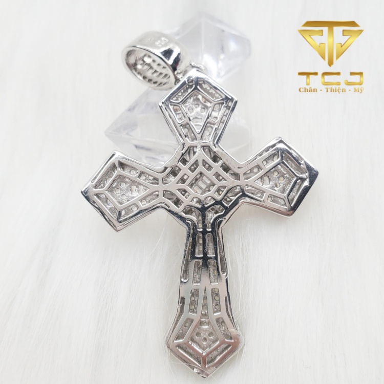 Mặt dây Nam bạc ý 925 xi vàng trắng thiết kế 3D cá tính MN0095 Trang sức Toàn Cầu TCJ