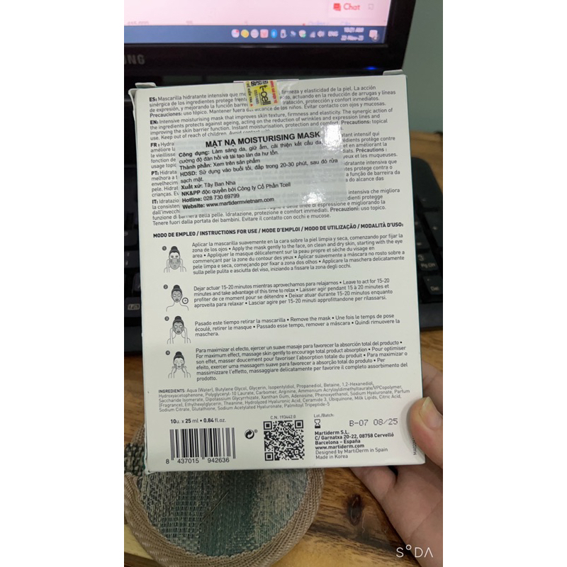 Mặt Nạ Dưỡng Ẩm, Phục Hồi Da, Chống Lão Hoá - MartiDerm The Originals Moisturising Mask Xuất xứ: Tây Ban Nha Công ty phân phối: CÔNG TY CỔ PHẦN T-CELL Địa chỉ: 117 - 119 Lý Chính Thắng, Phường Võ Thị Sáu, Quận 3, TP.HCM Số điện thoại: 028 7306 9799 Đại Lý: